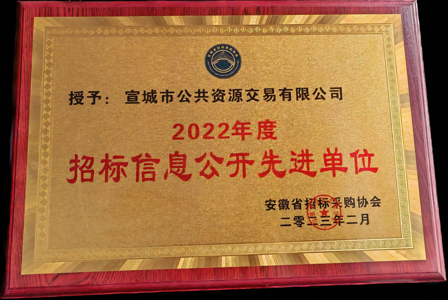 宣城市公共資源交易有限公司榮獲2022年度招標(biāo)信息公開先進(jìn)單位